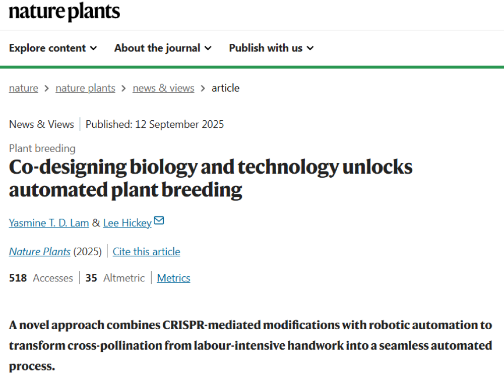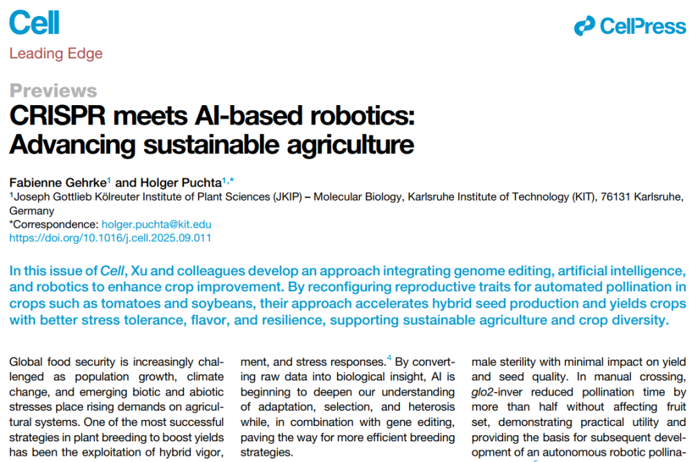 2025年8月11日,热烈庆祝XuLab第二篇《Cell》发表!开辟了“BT筑基+AI赋能+机器人(Robot)劳作”的智能育种(BAR)模式,标志着我国率先完成智能机器人育种闭环技术体系构建,在生物育种范式革新和催生新质生产力方面展现了“AI for Science”的重大应用前景。